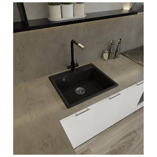 Кухонная мойка GranFest URBAN 658, черный. Для кухонного шкафа 60 см. Материал — кварцевый композит. Производство: Россия. Гарантийный срок: 5 лет.