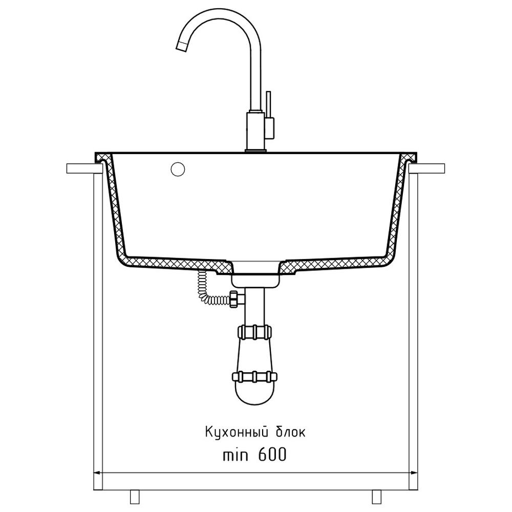 Кухонная мойка GranFest URBAN 658, темно-серый. Для кухонного шкафа 60 см. Материал — кварцевый композит. Производство: Россия. Гарантийный срок: 5 лет.