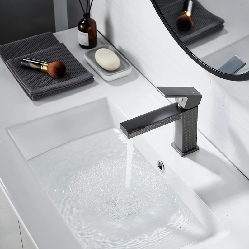 Изготовленный из прочной латуни, этот кран для умывальника обеспечивает долговечность и надёжность в использовании, а также устойчивость к механическим повреждениям. Механизм смесителя для раковины KN-20/GMP основан на керамическом картридже с рычажным управлением, что гарантирует лёгкость и точность регулировки температуры и напора воды.
