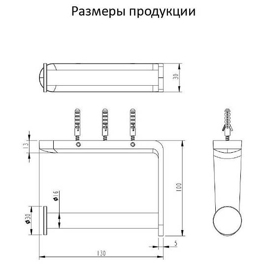 Длина держателя для туалетной бумаги составляет 13 см, вылет от стены 10 см.