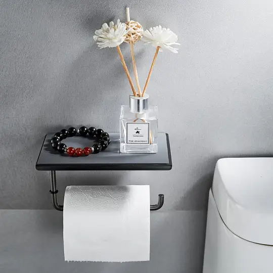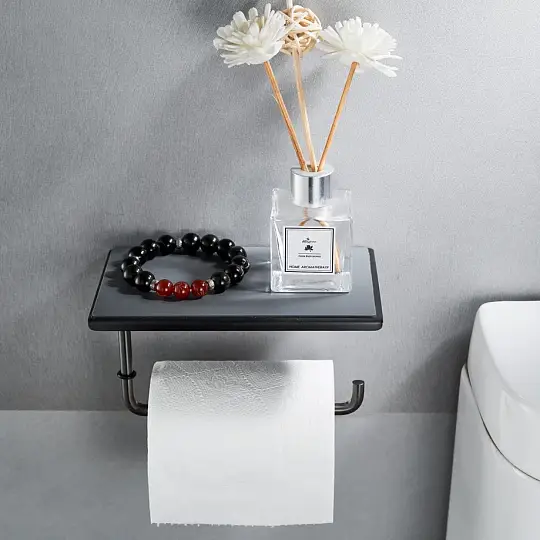 Держатель для туалетной бумаги с полочкой Shevanik SZ15T, оружейная сталь купить за 2 018 руб.
