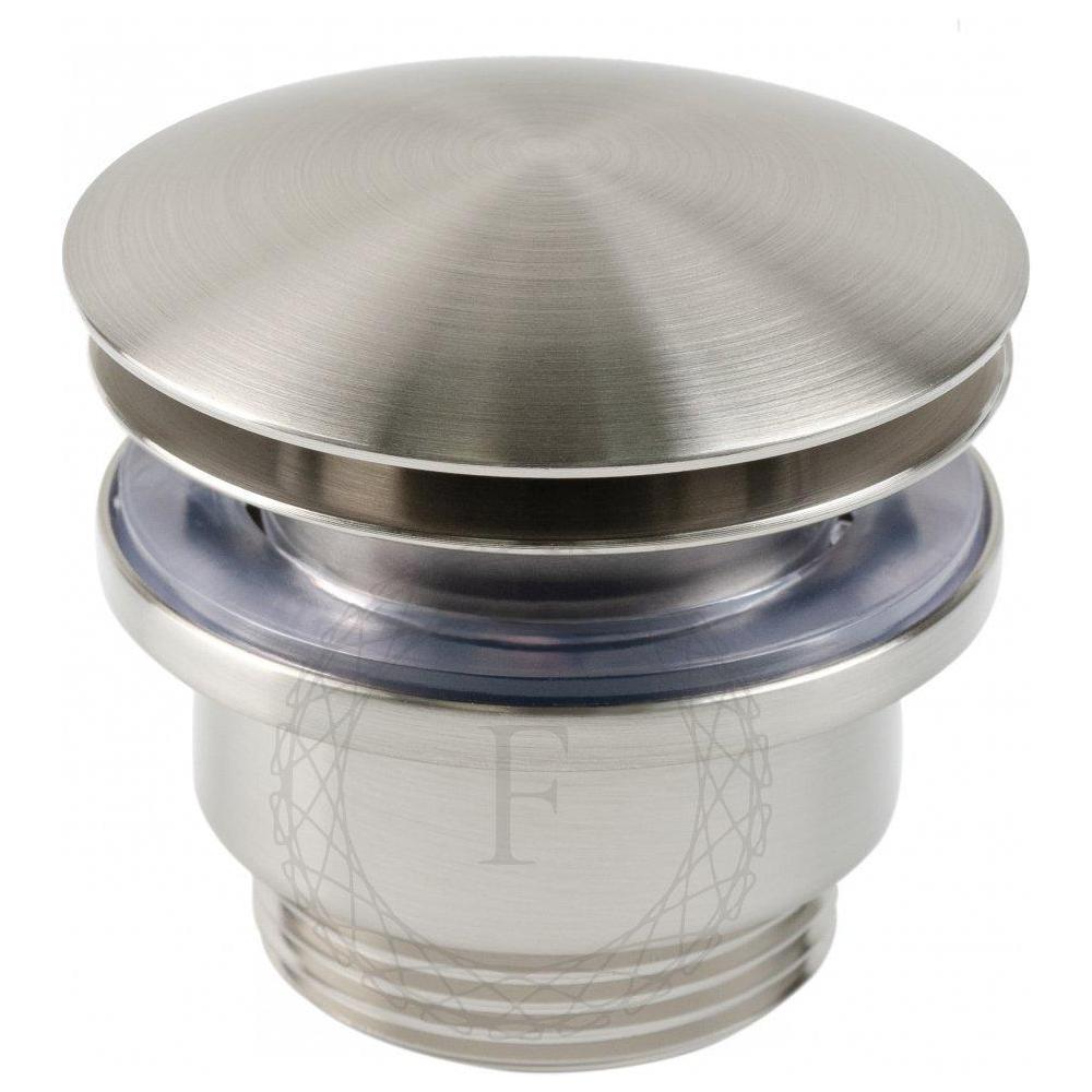 Донный клапан для раковины FILARETE FL75NK, никель. Нажимной донный клапан FILARETE – это надежная сливная арматура и изысканный штрих в интерьере идеальной ванной комнаты. В быту клапан не только сдержит проникновение неприятных запахов из канализации, но и превратит обычную раковину в многофункциональный атрибут: от своеобразной емкости для стирки мелких вещей до уходовых ванночек, тем самым выполняя бесценную водосберегающую функцию.