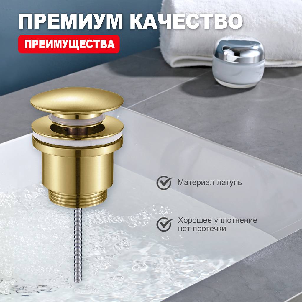Донный клапан для раковины Raglo R600.01.03, золотой сатин купить за 1 952 руб.
