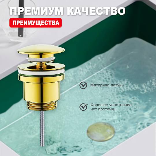 Донный клапан золотой блестящий R600.01.23 хорошо впишется в сочетании с открытыми сифонами. Плотно прилегает к сливу и мешает поступлению воды и неприятных запахов из канализации. Сделан из латуни. Не будет ржаветь и не потеряет блеск со временем. Клапан автоматический, чтобы перекрыть отверстие достаточно легкого нажатия на поверхность корпуса. В таком механизме пробка не потеряется. Конструкция качественная и надежная. ЗОЛОТОЙ БЛЕСТЯЩИЙ ГЛЯНЦЕВЫЙ!!!