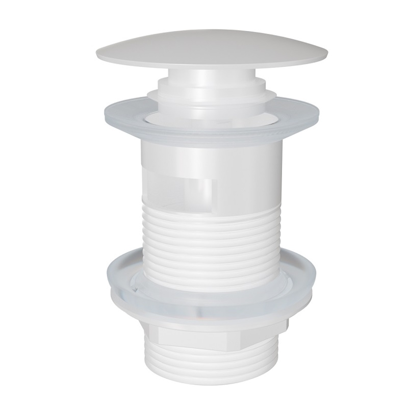 Донный клапан нажимной с переливом в матовом белом исполнении. Безупречная работа кнопки без заеданий (механизм CLICK-CLACK), защита от протечек, долговечность материалов. Отличный выбор для семей с детьми и тех, кто ценит чистоту и комфорт.
