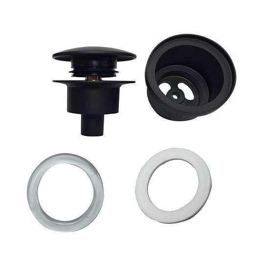 Донный клапан Haiba HB64-7. Данная модель имеет металлический корпус. Крышка черного цвета, выполнена из нержавеющей стали. Силиконовые прокладки обеспечивают плотное прилегание донного клапана к посадочному месту раковины. Без перелива.