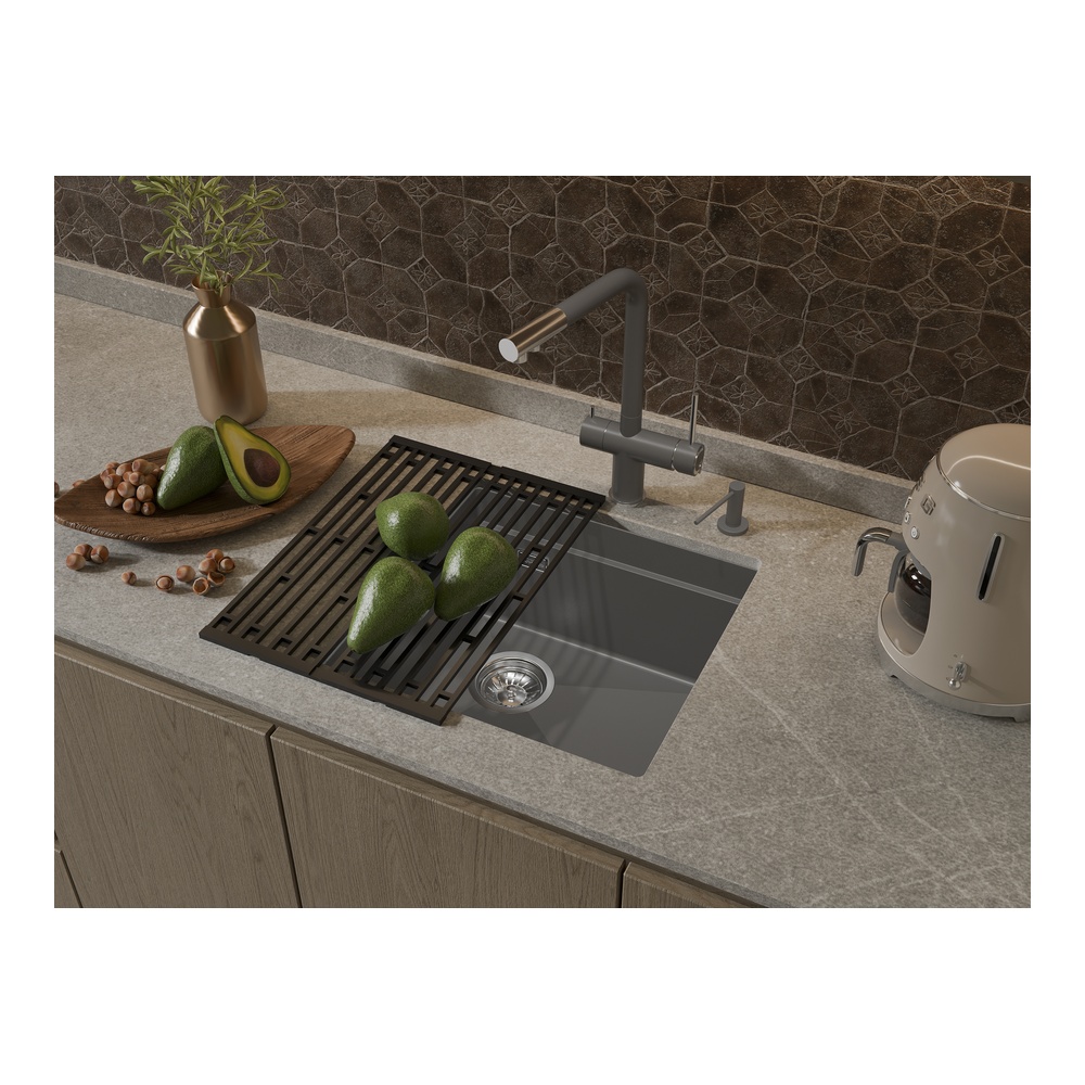 Для соблюдения единой концепции кухонного пространства дополните рабочую зону дозатором в цвет кухонной мойки или смесителя Rivelato.