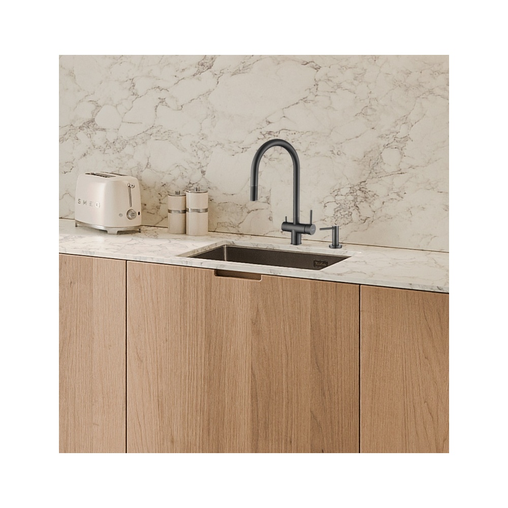 -Оттенок дозатора идеально сочетается с кухонными мойками и смесителями Rivelato