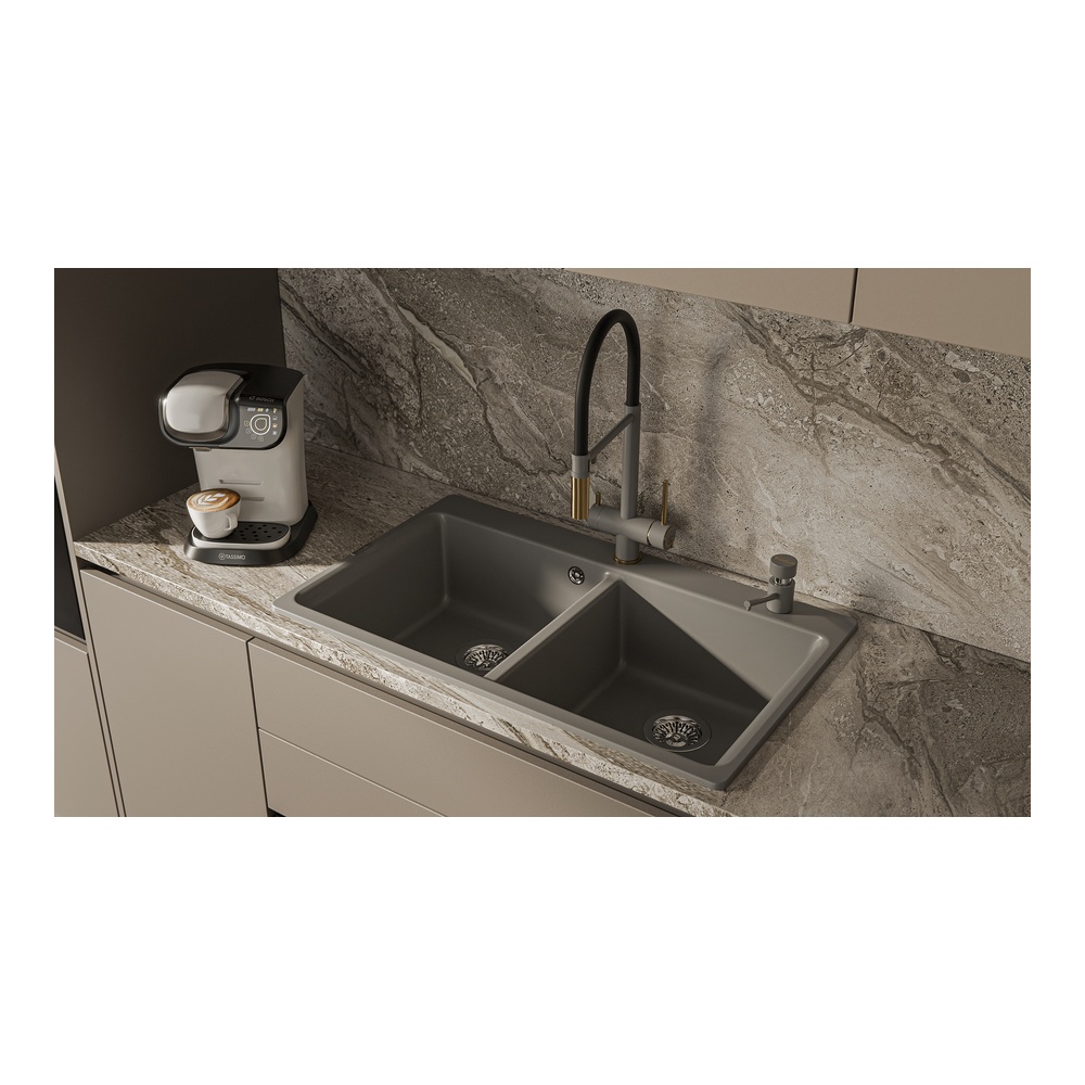 -Оттенок дозатора идеально сочетается с кухонными мойками и смесителями Rivelato