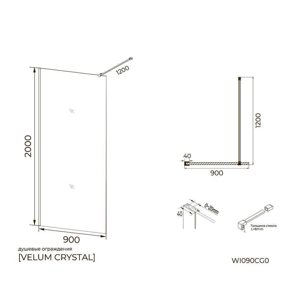 Душевая перегородка Knotlor WI090CG0GM 90х200, оружейная сталь купить по цене 24 550 руб.