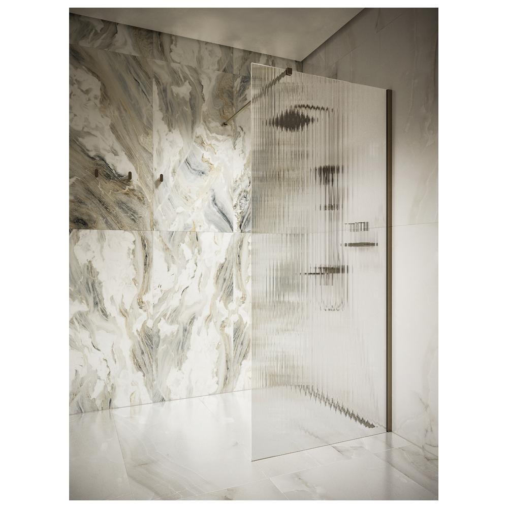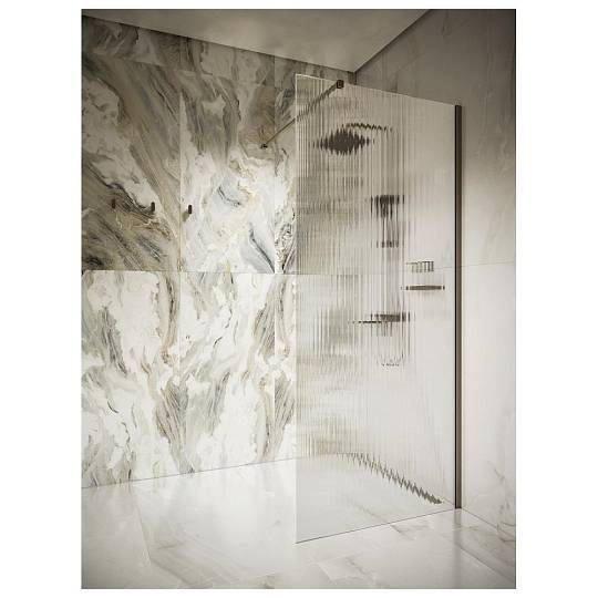 Превосходное сочетание современного дизайна и прочности. Душевое ограждение с вороненым стальным профилем добавит уникальный акцент в интерьер. Ребристое стекло 8 мм обеспечивает конфиденциальность и комфорт.