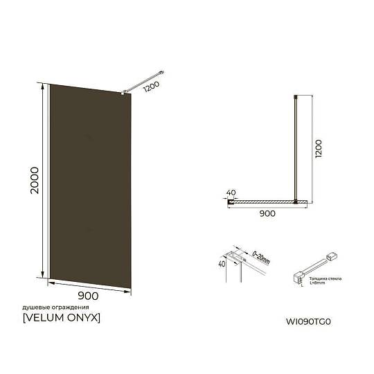 Душевая перегородка Knotlor WI090TG0GM 90х200, оружейная сталь купить по цене 26 700 руб.