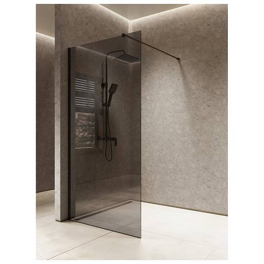 Стильное и функциональное решение для ванной комнаты. Душевое ограждение Walk-In с матовой рамкой черного цвета и тонированным стеклом создаёт атмосферу приватности и уюта. Smart Clean облегчает уход за стеклом. Прочный алюминиевый профиль обеспечивает надежность и долговечность.