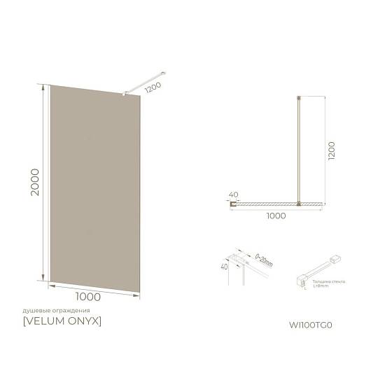 Душевая перегородка Knotlor WI100TG0GM 100х200, оружейная сталь купить по цене 27 700 руб.