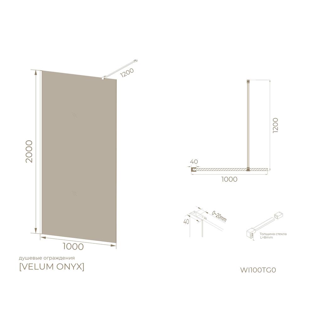 Душевая перегородка Knotlor WI100TG0RB 100х200, бронза купить по цене 32 900 руб.