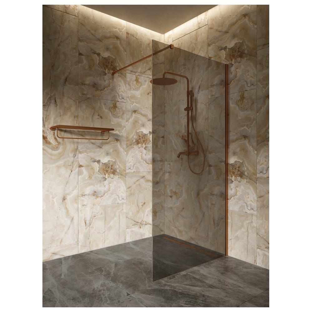 Элегантное и практичное душевое ограждение с бронзовой матовой рамкой и тонированным стеклом. Технология Smart Clean облегчает уход, а прочный алюминиевый профиль гарантирует надежность и долговечность конструкции.