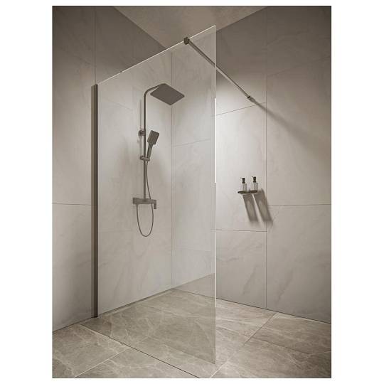 Простор, свет и стиль в ванной комнате. Walk-In длиной 120 см с воронёным алюминиевым профилем и прозрачным стеклом 8 мм создаёт ощущение открытой душевой зоны. Smart Clean защищает стекло от загрязнений, а современный дизайн гармонично вписывается в любой интерьер.