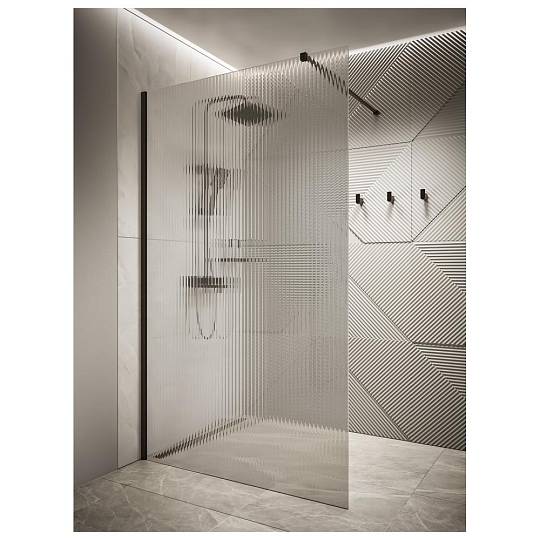 Душевое ограждение шириной 120 см — для тех, кто ценит пространство и комфорт. Надежное ребристое стекло 8 мм в сочетании с матовым алюминиевым профилем создает атмосферу премиальной ванной комнаты.
