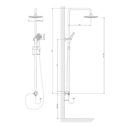 Верхний душ с кронштейном, душевая штанга с держателем лейки, ручной душ, шланг