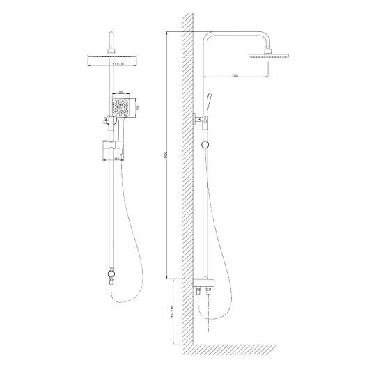 Верхний душ с кронштейном, душевая штанга с держателем лейки, ручной душ, шланг