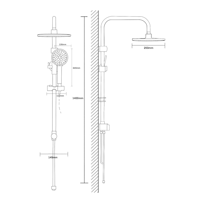 Выдвижная телескопическая стойка(нерж. сталь, цвет хром): высота функциональная 930-1400мм,  диаметр 22мм ,вылет верхнего душа 340мм, держатель лейки плавающий FightFix.