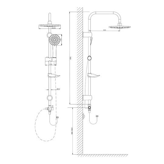 Верхний душ с кронштейном, душевая штанга с держателем лейки, ручной душ, шланг, мыльница