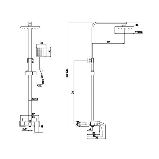 Верхний душ, душевая штанга с держателем лейки, ручной душ, смеситель, шланг