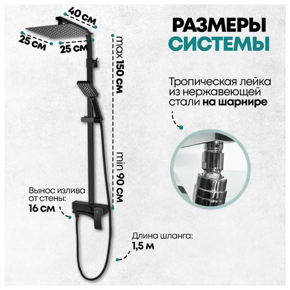 Душевая система Grocenberg GB7007-1BL, черный купить по цене 37 800 руб.