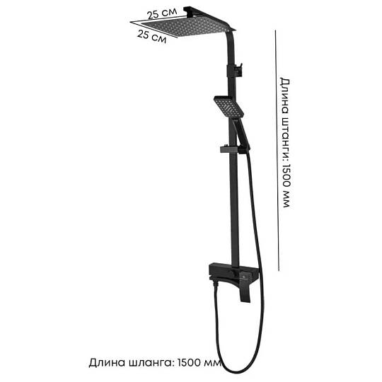 Верхний душ: диаметр 25 см (квадрат)