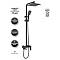 Верхний душ, душевая штанга с держателем лейки, ручной душ, смеситель, шланг, эксцентрики, декоративные отражатели