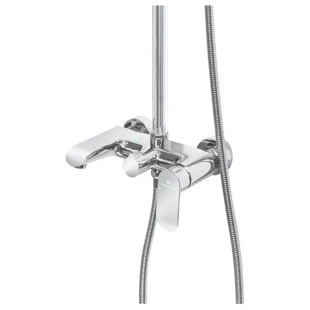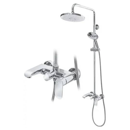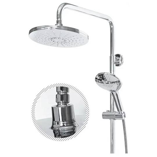Верхний душ, душевая штанга с держателем лейки, ручной душ, смеситель, шланг, эксцентрики, декоративные отражатели
