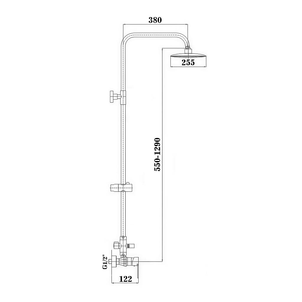 - Душевая штанга из нержавеющей стали с регулировкой по высоте, позволяющая адаптировать систему под любые потребности пользователей.