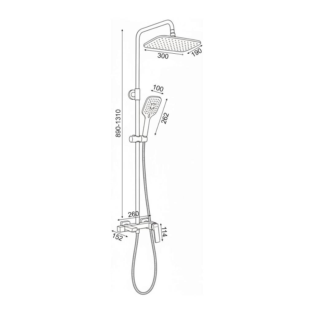 Смеситель, верхний душ, штанга, лейка, шланг, эксцентрики, декоративные чашки