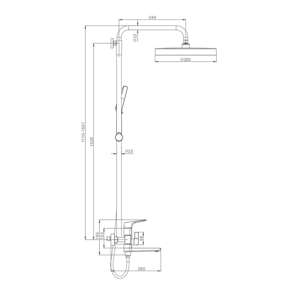 Форма верхнего душа (ШхД): круглая ∅320мм