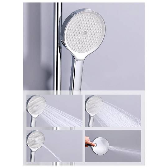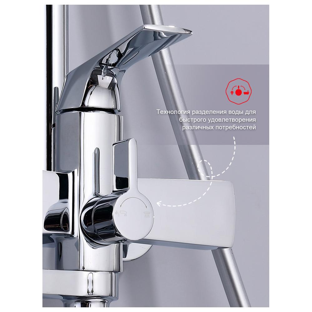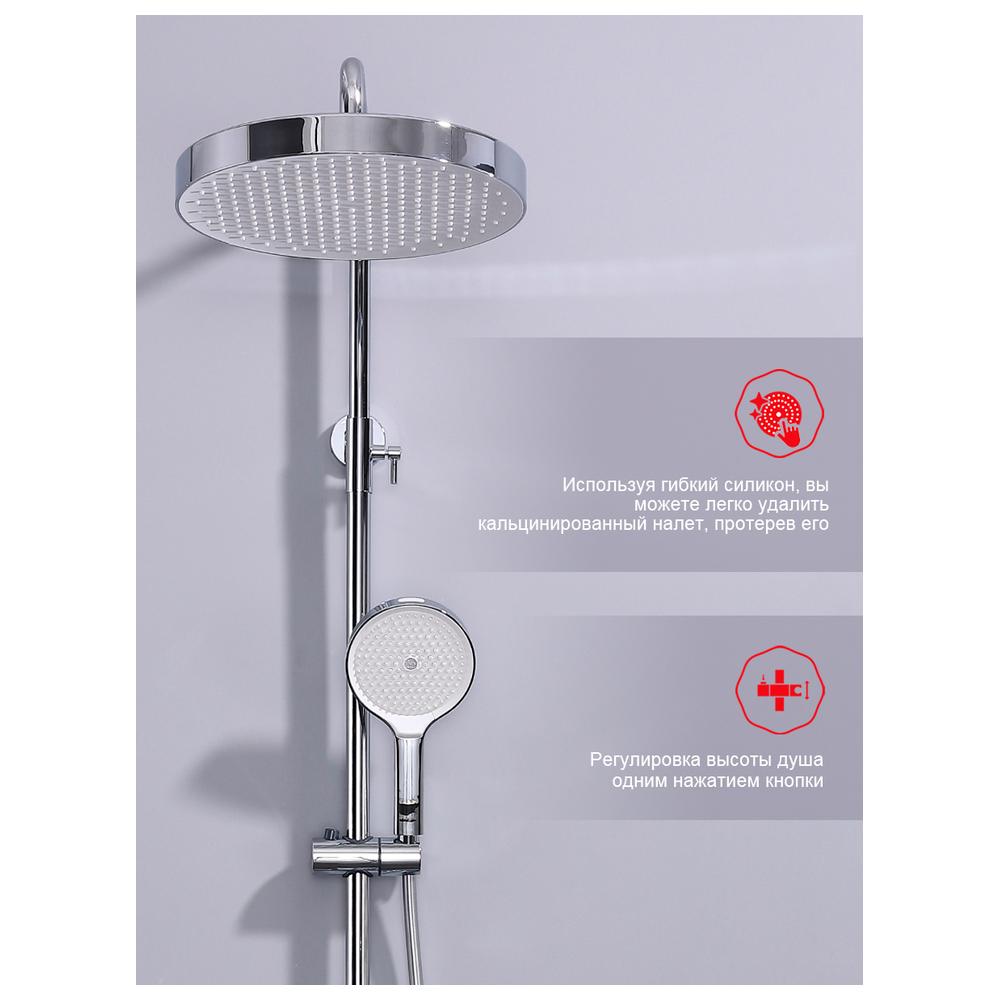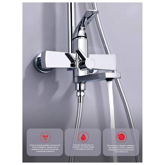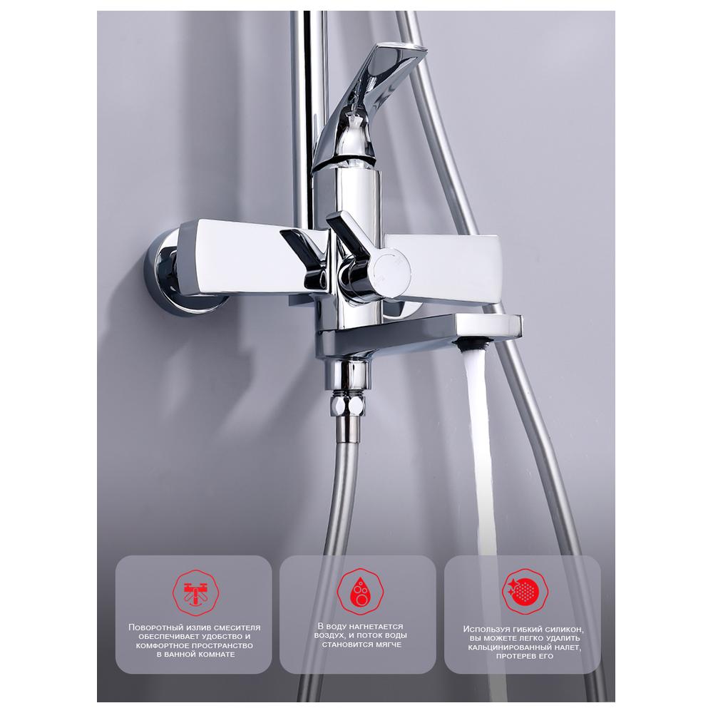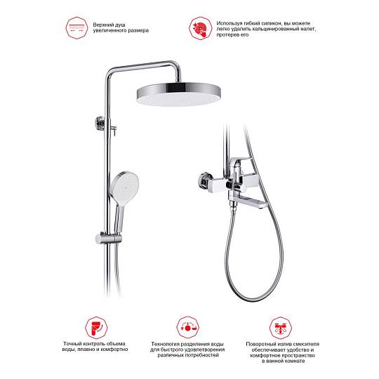 Верхний душ, душевая штанга с держателем лейки, ручной душ, смеситель, шланг