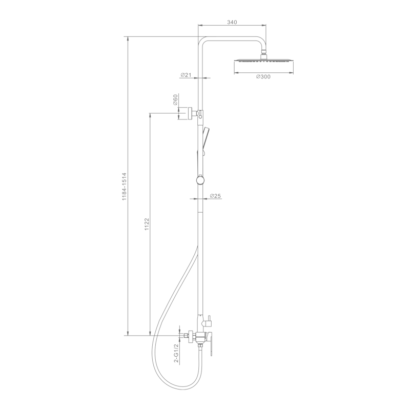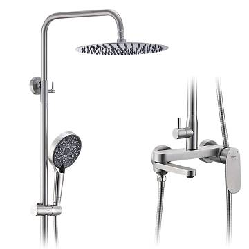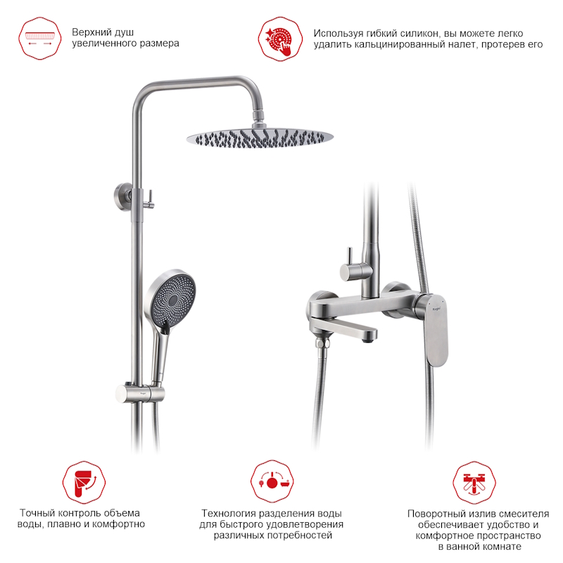 Верхний душ, душевая штанга с держателем лейки, ручной душ, смеситель, шланг