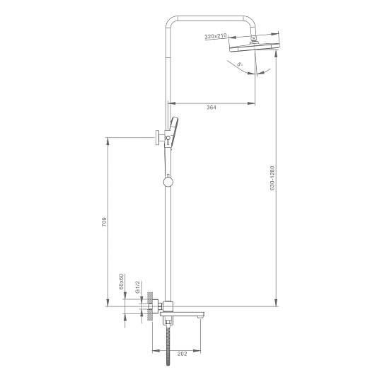 Душевая система Raglo R30.24.06. Цвет: черный. Материал: латунь. Управление: однорычажное. Механизм: керамический картридж. Излив: поворотный. Аэратор. Регулируемая по высоте душевая штанга: 630-1280 мм. Форма верхнего душа: прямоугольная. Размер верхнего душа (ШхД): 320х210 мм. Регулируемый по высоте и наклону держатель ручного душа. Высота ручного душа: 247 мм. Количество режимов струи ручного душа: 3. Отверстия для монтажа: 3. Стандарт подводки: G 1/2. Монтаж: на стену.