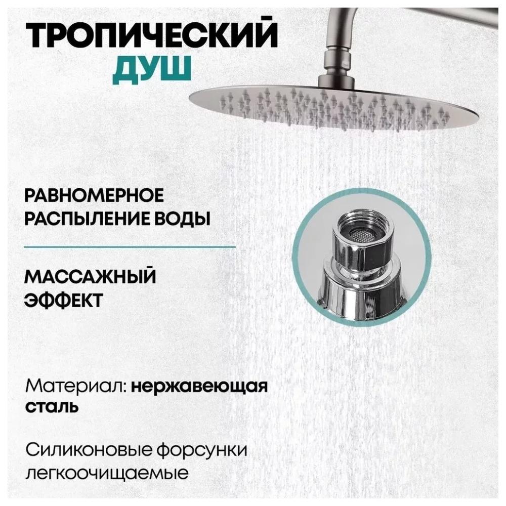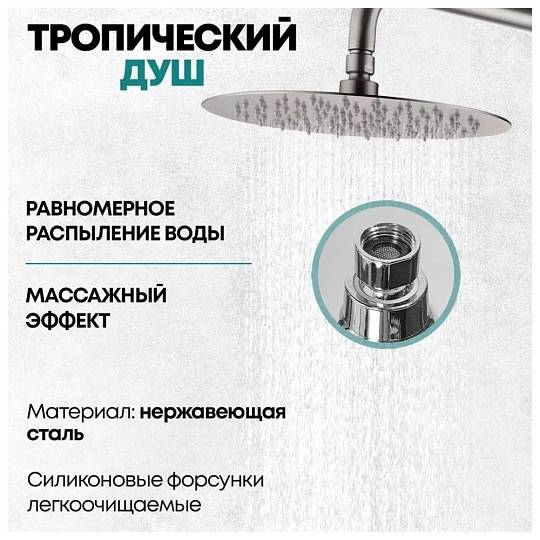 Данный товар подойдет вам, если вы ищете смеситель для ванны и душа, душевой гарнитур, душевую систему, душевой комплект, душевую стойку, тропический душ со смесителем, душевую стойку со смесителем, стойку для душа, тропический душ комплект.