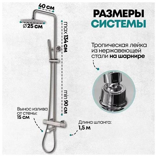Душевая система с термостатом Grocenberg GB7005NK, никель купить по цене 38 520 руб.
