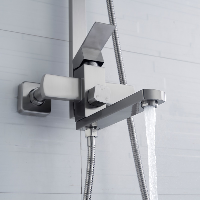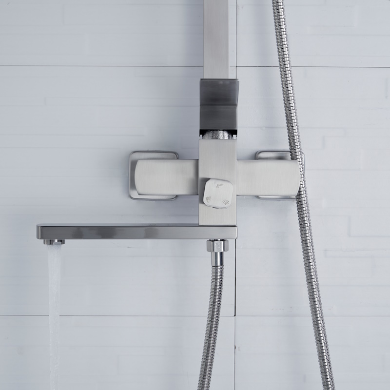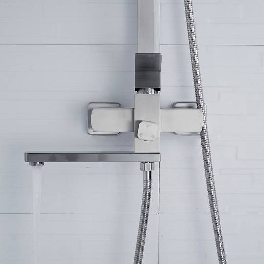 Система оснащена длинным поворотным изливом, который идеально подходит для удобного наполнения ванны и позволяет использовать душ в качестве смесителя для других нужд.