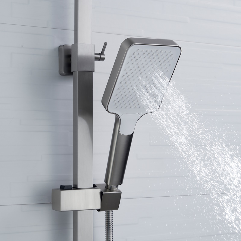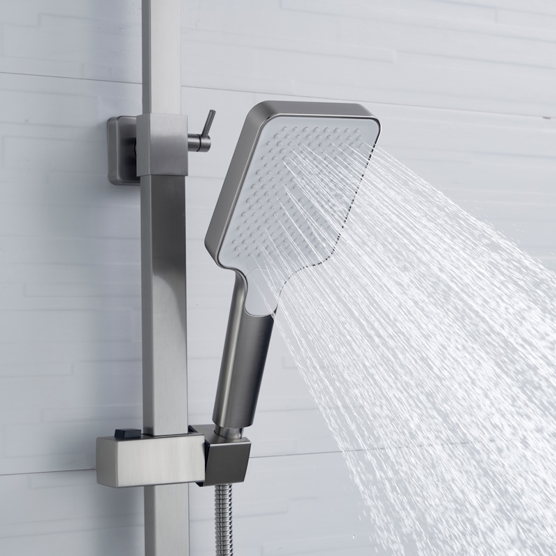 Ручной душ с 3 режимами работы также изготовлен из качественного ABS-пластика, регулируется по высоте и наклону для оптимального комфорта использования.