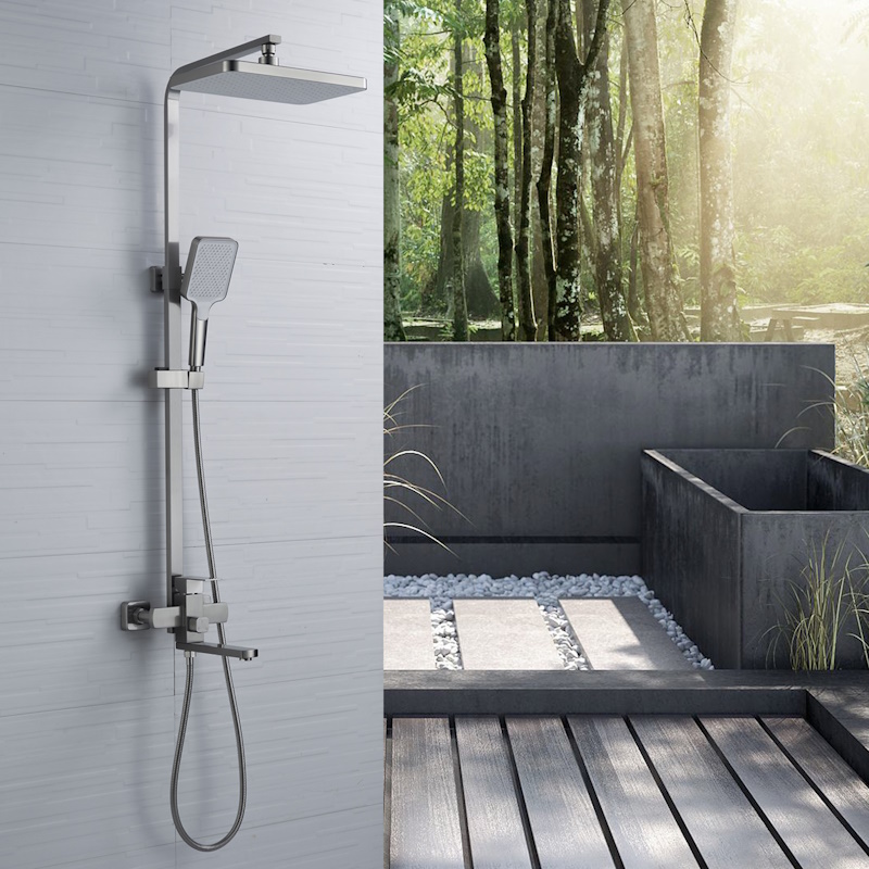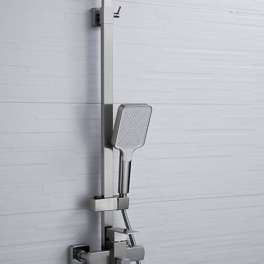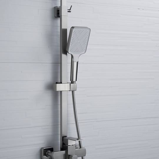 Душевая система Shevanik S7036L в цвете "сатин" - идеальное решение для вашей ванной комнаты. Изготовленная из прочной нержавеющей стали, она гарантирует долговечность и надежность использования.