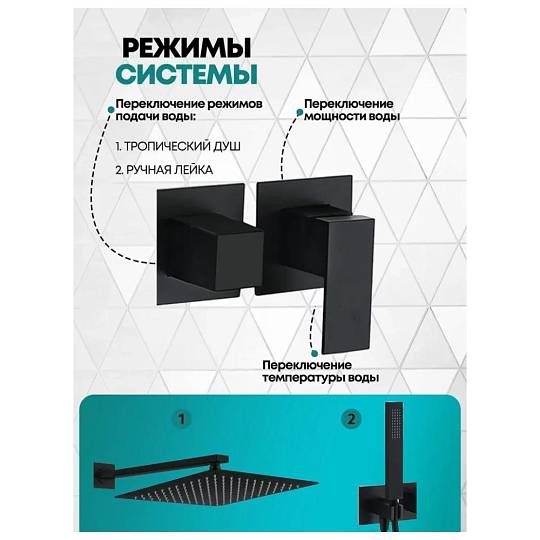 Душевая система с тропическим душем встраиваемая без излива.
