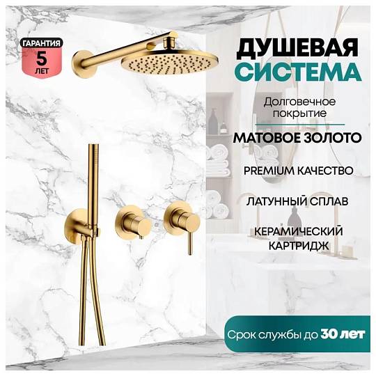 Душевая система встраиваемая (без излива) Grocenberg GB5090MG, матовое золото купить по цене 50 760 руб.
