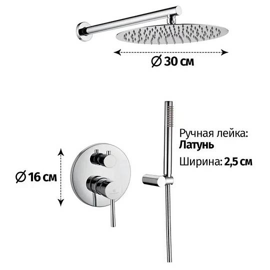 Верхний душ диаметр 30 см (круг)