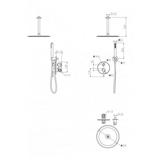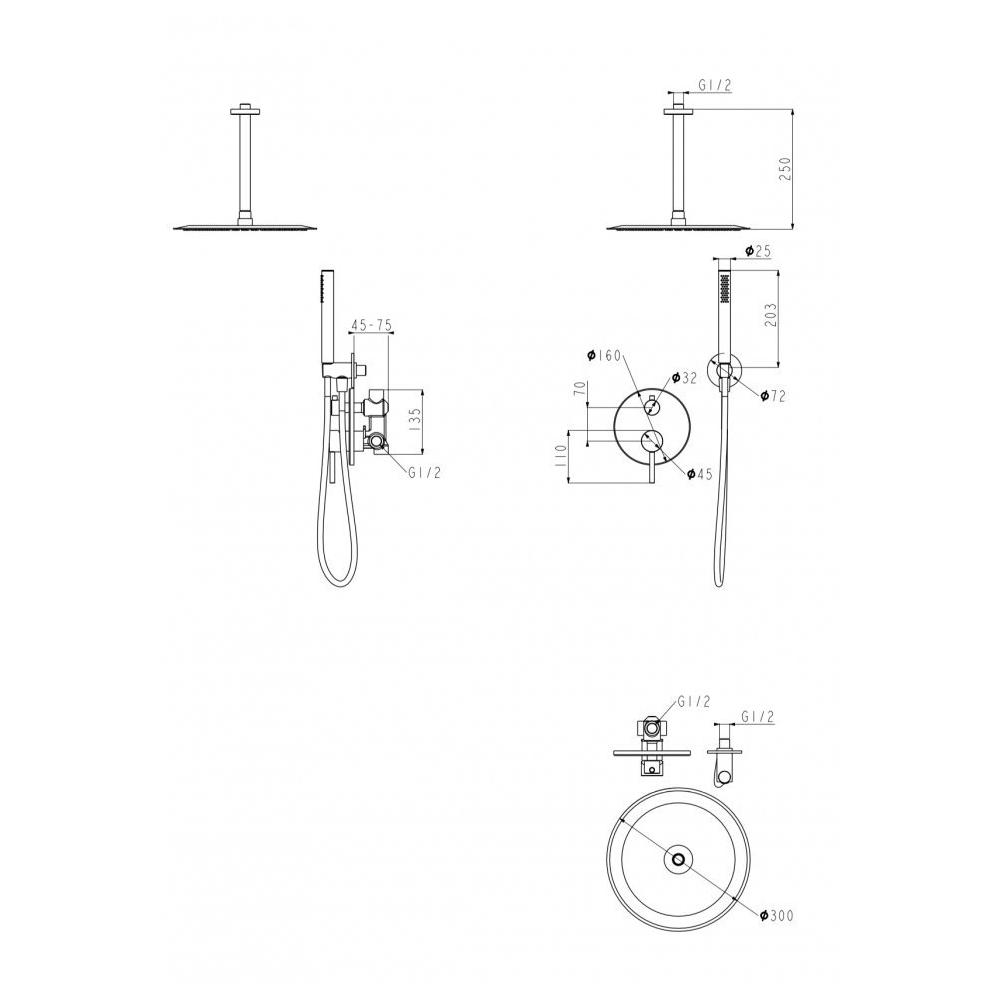 Верхний душ диаметр 30 см (круг)
