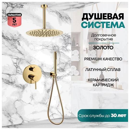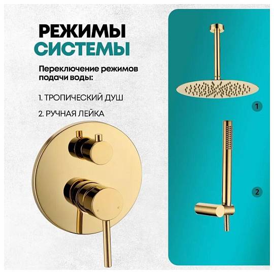 Душевая система встраиваемая (без излива) Grocenberg GB5099GO-4, золото купить по цене 34 200 руб.