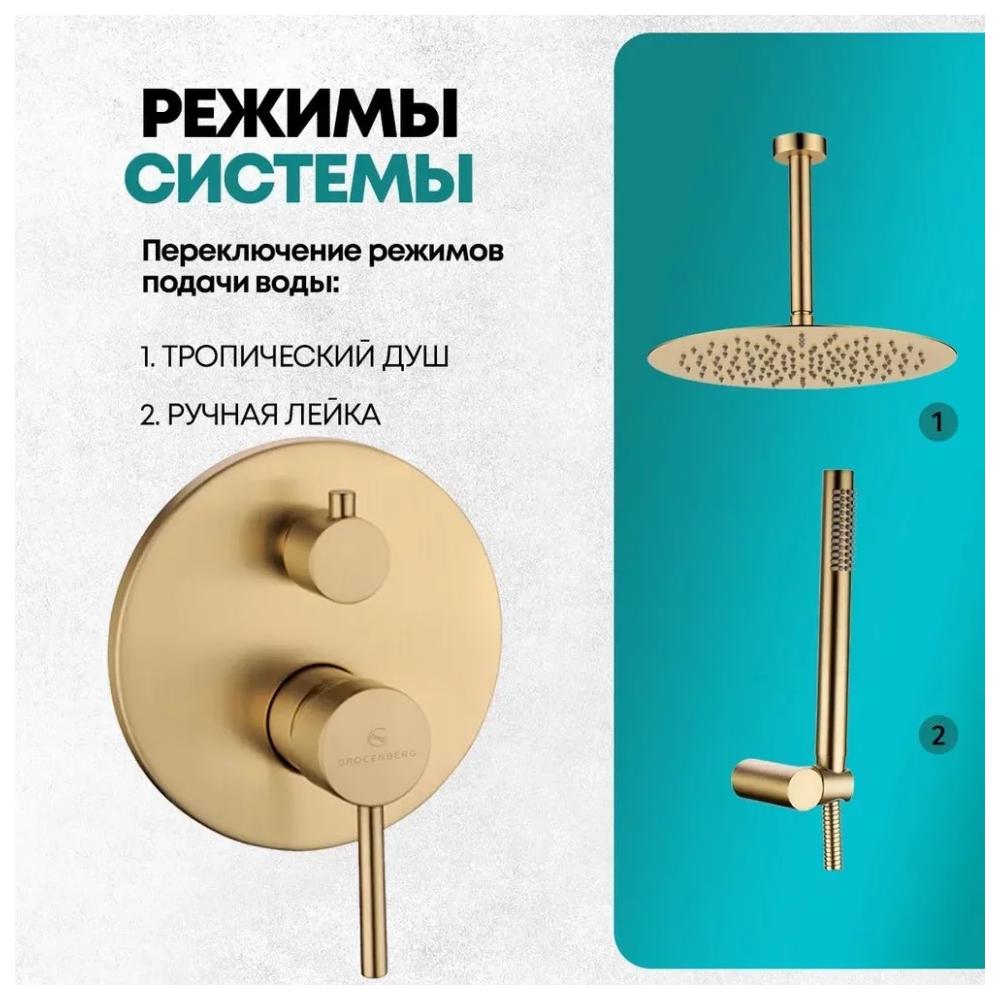 Душевая система встраиваемая (без излива) Grocenberg GB5099MG-4, матовое золото купить по цене 34 830 руб.