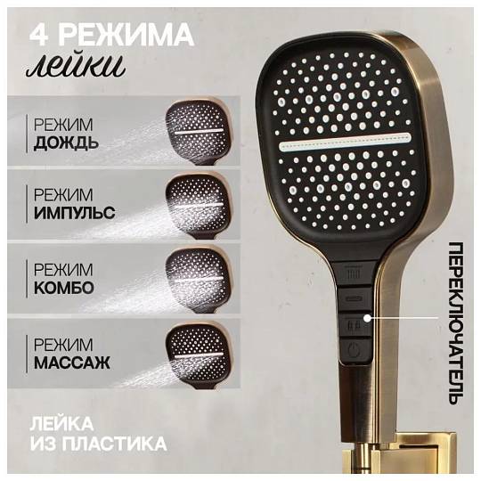 Ручная лейка: 13х13 см (4 режима)