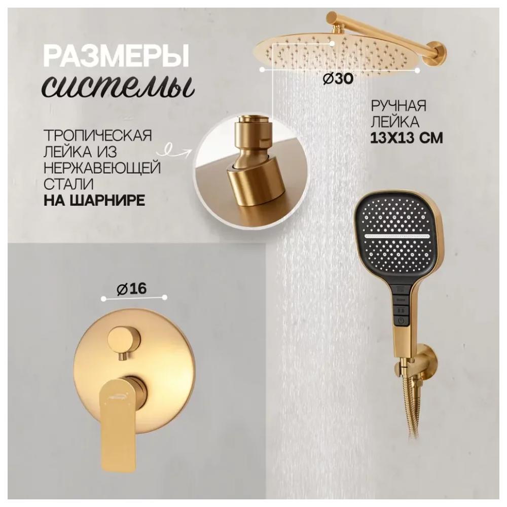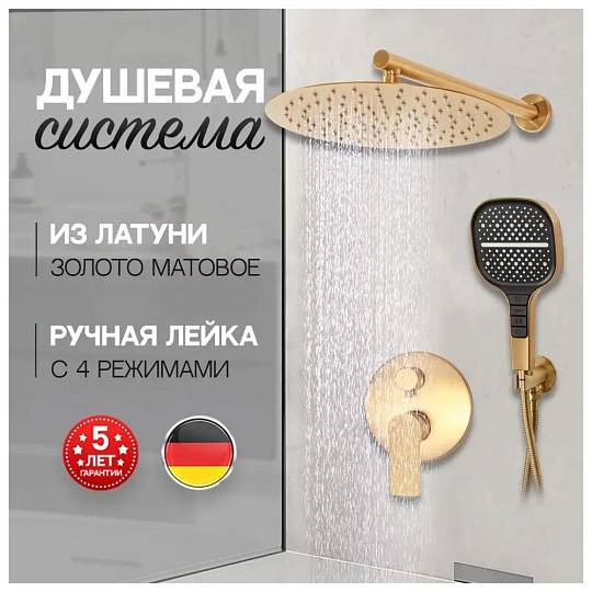 Душевая система встраиваемая (без излива) Hansberge H6090MG, матовое золото купить по цене 35 820 руб.